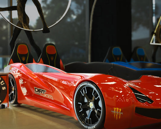 Blue Kids Race Car Bed