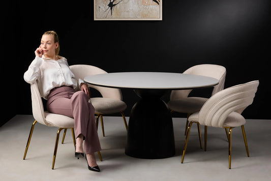 Alva 4 Seater Dining Table With White Top and Grey Trunk