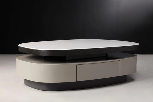 Puck MDF Coffee Table with Grey Marble Finish and Hidden Drawers