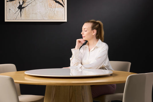 HEDDA Wooden Round 6 Seater Dining Table - Light Wood