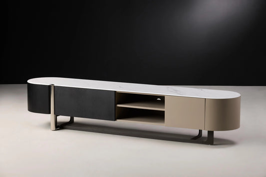 Nicol TV Unit with Sliding Door for Storage - Beige and Black