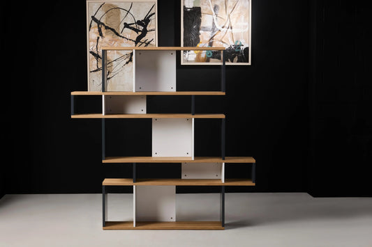 Asymmetrical Bookshelf - Wooden and Black Finish